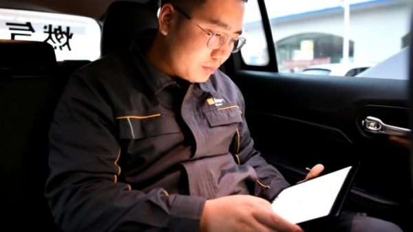 技術(shù)人員通過(guò)檢測(cè)車(chē)進(jìn)行燃?xì)庑孤z測(cè)。(圖片由通訊員郭良潔提供)