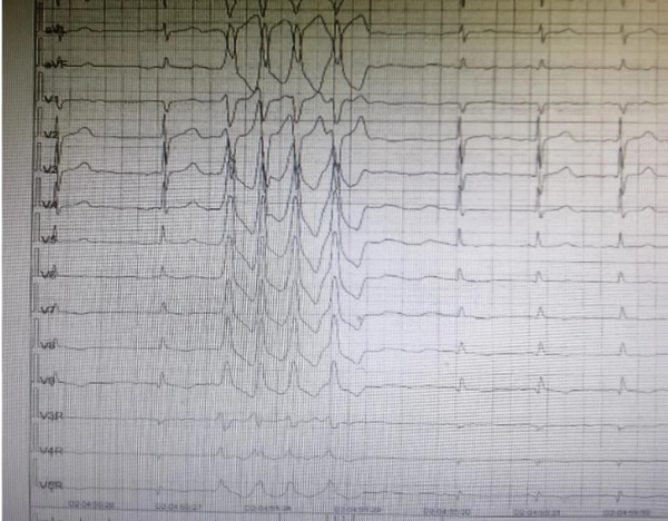 近日,市第二醫(yī)院心內(nèi)一科接收了一位 53 歲的男性病患,其頭暈間斷發(fā)作已有 3 年,頭顱 CT 及頭顱核磁皆未顯示明顯異常。近 3 個月,該患者頭暈發(fā)作愈發(fā)頻繁,通過動態(tài)心電圖檢查發(fā)現(xiàn)了問題:患者有短陣室性心動過速!
