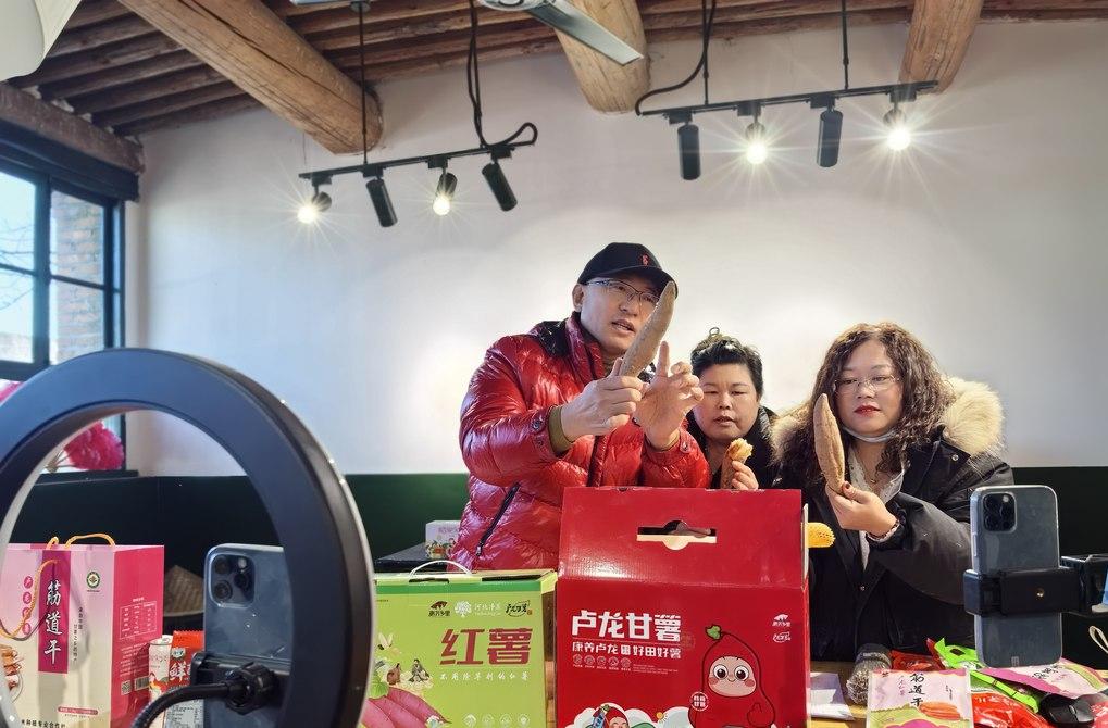 當(dāng)天,盧龍縣電子商務(wù)公共服務(wù)中心在張家莊村進(jìn)行今年春節(jié)前的最后一場直播,向廣大網(wǎng)友推薦甘薯、粉條、紅薯干等當(dāng)?shù)靥厣r(nóng)產(chǎn)品,受到歡迎。