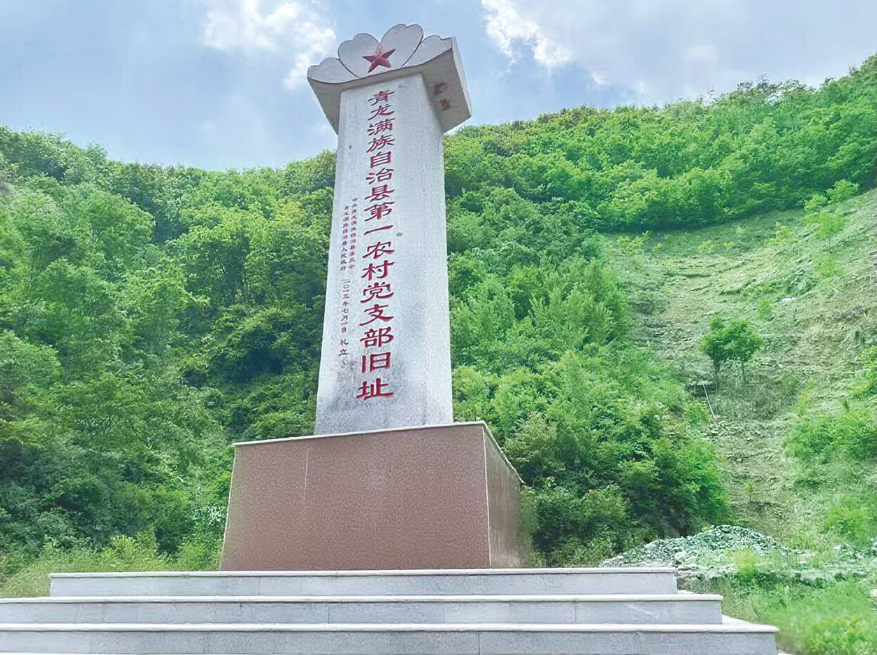 2013年7月,青龍滿族自治縣在二道溝村黨支部原址上設(shè)立“青龍滿族自治縣第一農(nóng)村黨支部舊址”紀念碑。二道溝村黨支部也是秦皇島地區(qū)第一個農(nóng)村黨支部。(圖片由青龍滿族自治縣委黨史研究中心提供)