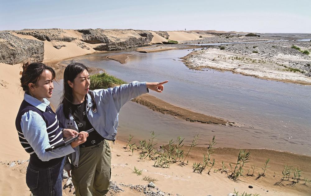 援疆專技人才正在與當(dāng)?shù)厮到y(tǒng)干部巡查車爾臣河,進(jìn)一步排查河道管理范圍內(nèi)的“四亂”問題。