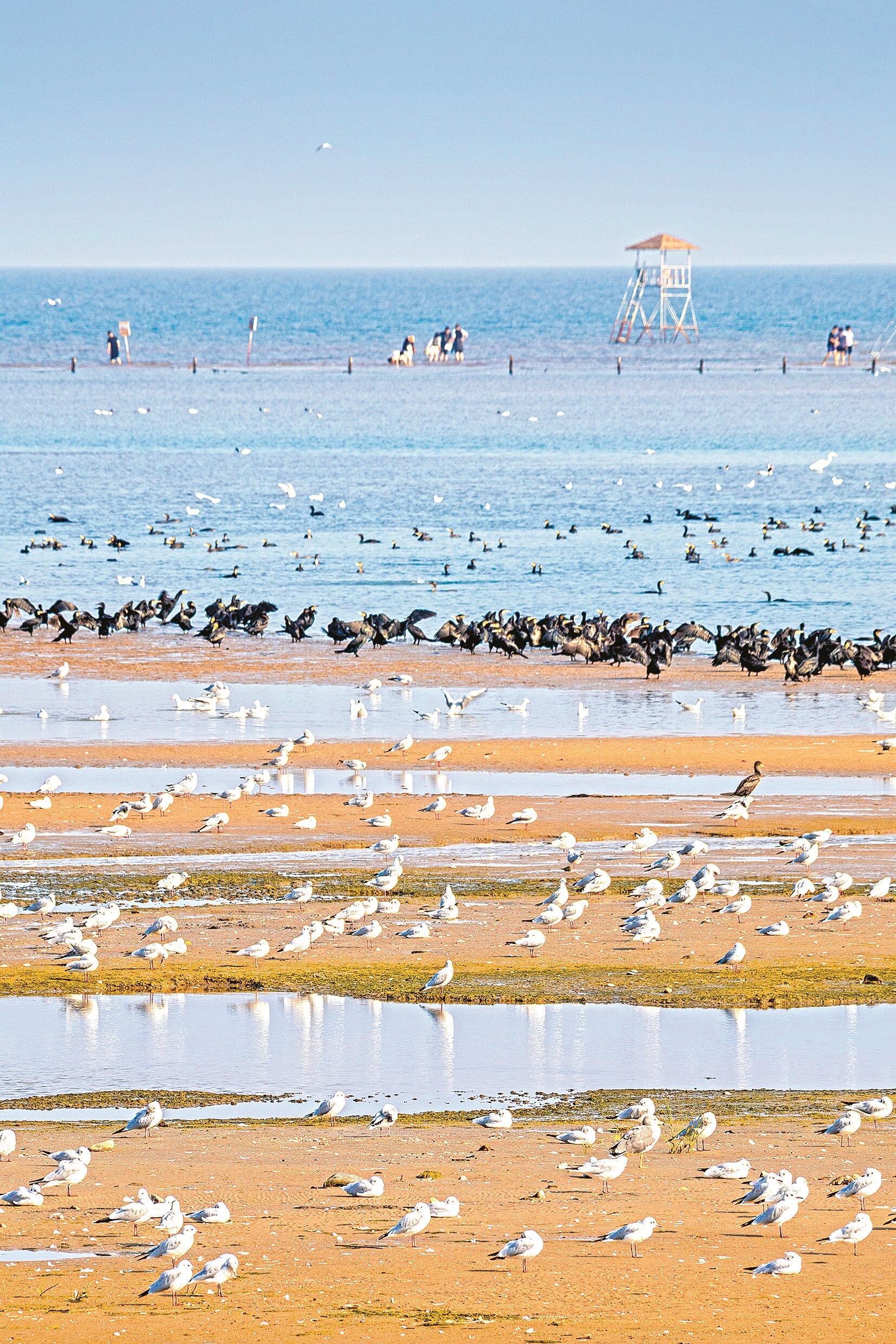 秋日里的北戴河鴿子窩公園大潮坪,沙軟潮平,百鳥翔集。鳥兒或覓食或嬉戲,與碧海金沙構(gòu)成一幅和諧美好的畫面。通訊員 楊占軍 攝